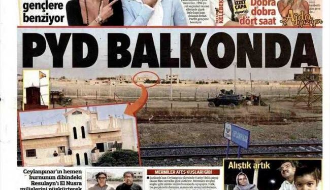 «Το PYD είναι στο μπαλκόνι» είναι ο τίτλος της Hürriyet. H τουρκική εφημερίδα αναφέρει πως αντάρτες της οργάνωσης PYD ( το παρακλάδι του PKK στη Συρία) αφού έδιωξαν του αντάρτες της Αλ Νουσρα , ανέβηκαν στα μπαλκόνια σπιτιών και άρχισαν να κάνουν σόου απέναντι από τα σύνορα της Τουρκίας.