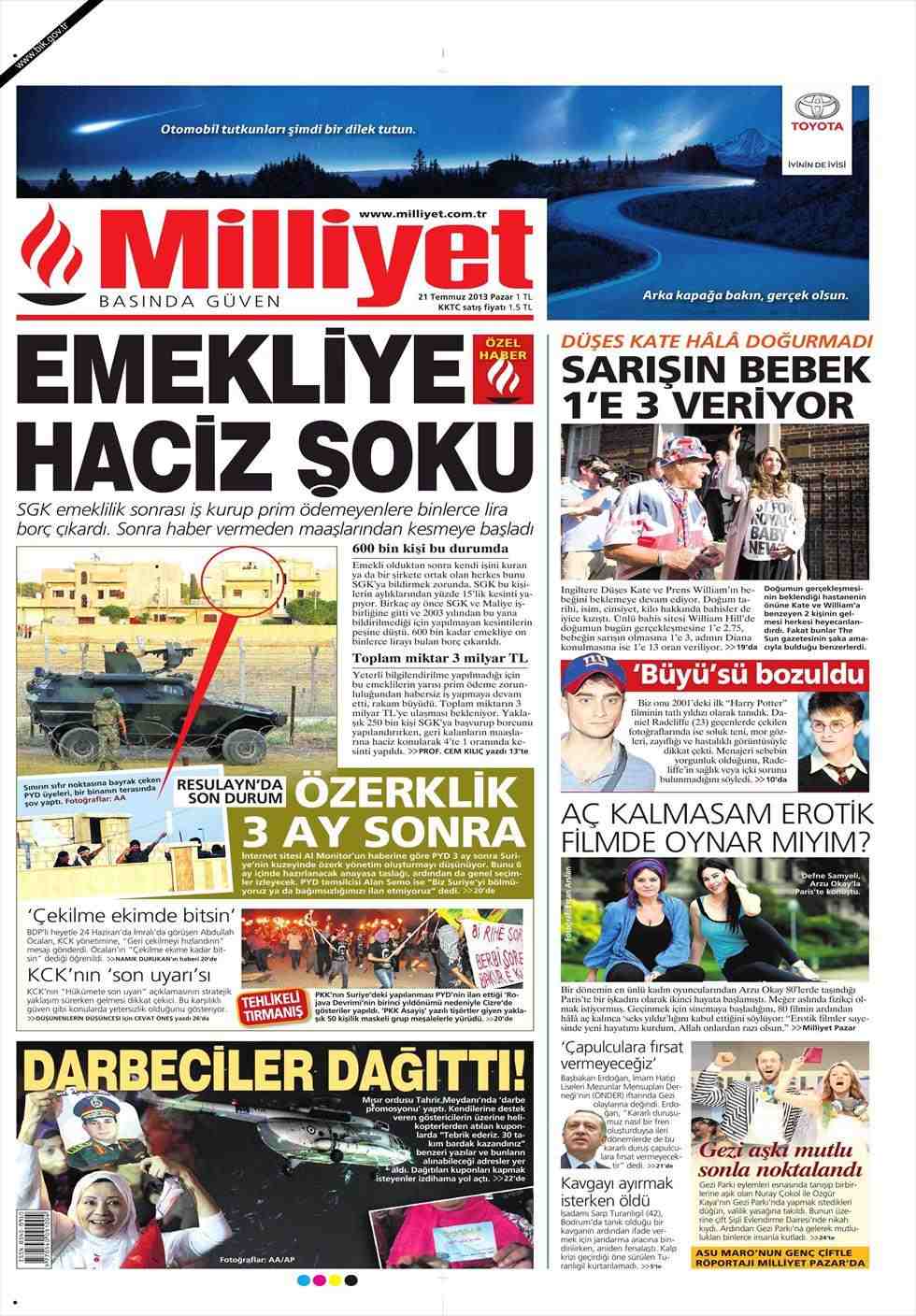 «Σοκ κατάσχεσης στους συνταξιούχους» είναι ο τίτλος της Μilliyet. Η τουρκική εφημερίδα αναφέρει πως χιλιάδες Τούρκοι οι οποίοι είχαν συνταξιοδοτηθεί όμως συνέχιζαν να εργάζονται πρέπει να πληρώσουν τεράστια πρόστιμα για κρατήσεις που δεν πλήρωσαν επειδή δεν είχαν ενημερώσει τις αρχές για τη νέα οικονομική δραστηριότητα τους και επειδή δεν κατέβαλαν τις απαραίτητες κρατήσεις.