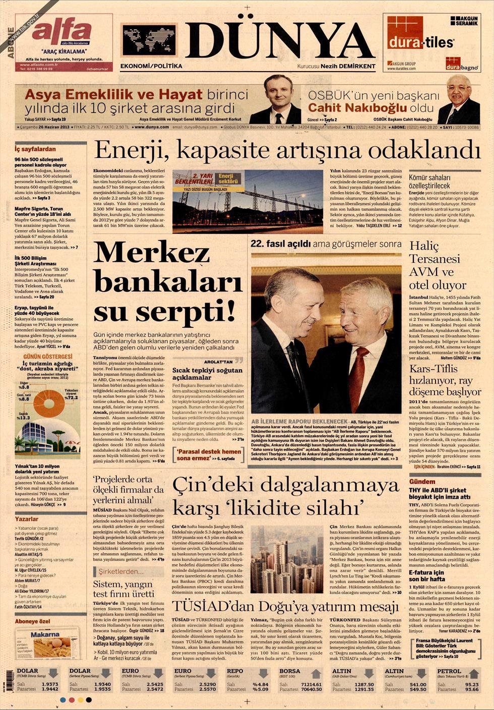 «Η ενέργεια εστίασε την προσοχή της στην αύξηση της παραγωγής» είναι ο τίτλος της οικονομικής εφημερίδας Dünya. H συγκεκριμένη εφημερίδα αναφέρεται πως ακόμη και αν δεν έχουν πραγματοποιηθεί όλες οι προσδοκίες της οικονομικής ανάπτυξης αυξάνονται ραγδαία οι επενδύσεις στον τομέα της ενέργειας.