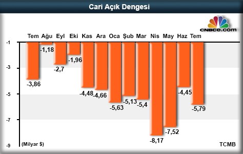 Την περίοδο Ιανουαρίου-Ιουλίου του 2012 το έλλειμμα τρεχουσων συναλλαγών βρίσκονταν στα 34 δισεκατομμύρια δολάρια. Η ραγδαία αύξηση του το 2013 προβληματίσει την Κεντρική Τράπεζα της Τουρκίας που τις τελευταίες εβδομάδες επέτρεψε την μικρή υποτίμηση της τουρκική λίρας έναντι του δολαρίου και του Ευρώ για να βελτιωθεί η κατάσταση του συγκεκριμένου ελλείμματος.