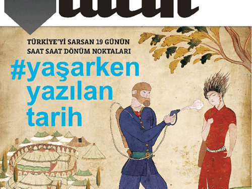 “Ζώντας την ιστορία που γράφεται- Οι κρίσιμες στιγμές των 19 ημερών που συγκλόνισαν την Τουρκία » ήταν ο τίτλος του περιοδικού που είχε σκίτσο της φωτογραφίας της επίθεσης του αστυνομικού που με τη χρήση δακρυγόνων είχε επιτεθεί εναντίον της κοπέλας που φορούσε κόκκινο φόρεμα.