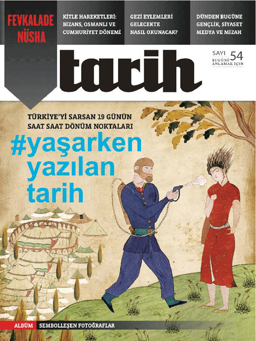 “Ζώντας την ιστορία που γράφεται- Οι κρίσιμες στιγμές των 19 ημερών που συγκλόνισαν την Τουρκία » ήταν ο τίτλος του περιοδικού που είχε σκίτσο της φωτογραφίας της επίθεσης του αστυνομικού που με τη χρήση δακρυγόνων είχε επιτεθεί εναντίον της κοπέλας που φορούσε κόκκινο φόρεμα.