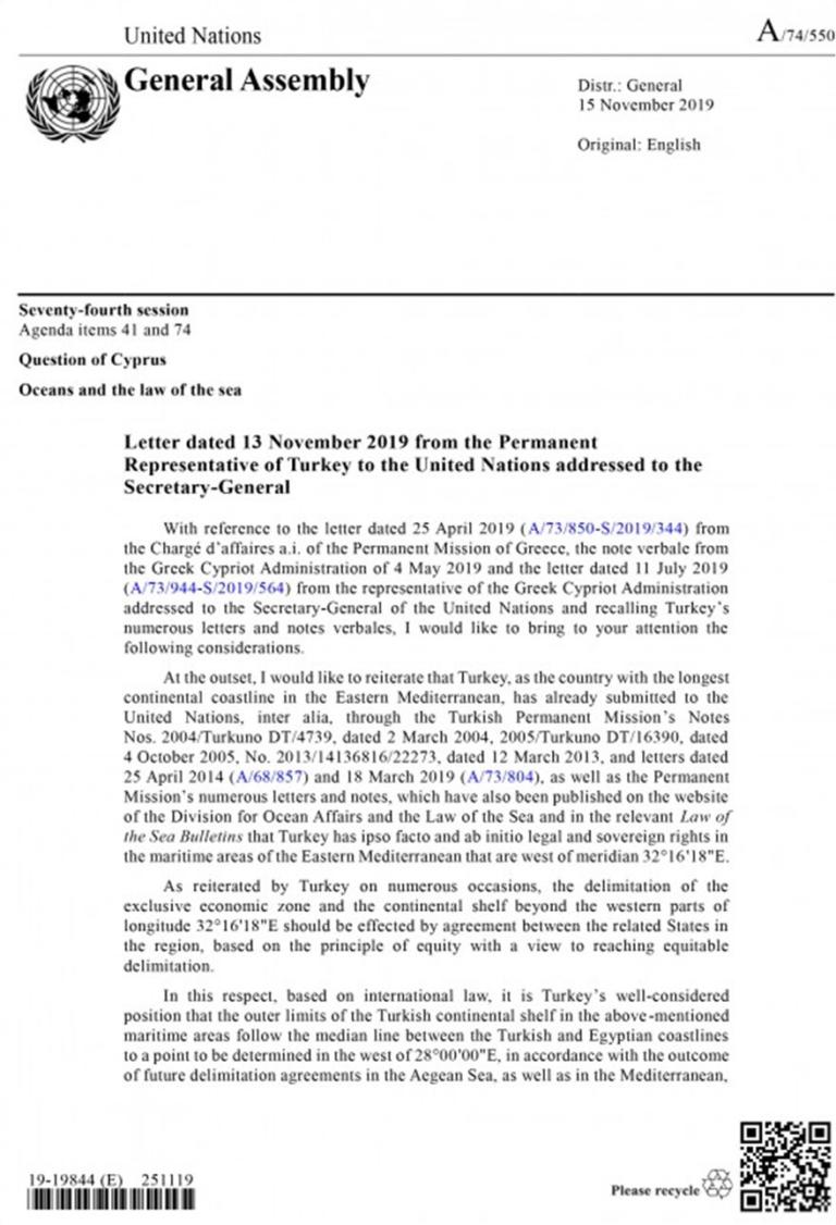 Δείτε την επιστολή που κατέθεσε στον ΟΗΕ η Τουρκία: