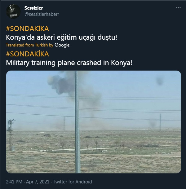 #SonDakika Konya'da askeri eğitim uçağı düştü… Olay yerine sağlık ve itfaiye ekipleri sevk edildi pic.twitter.com/2zEUtAyuEd