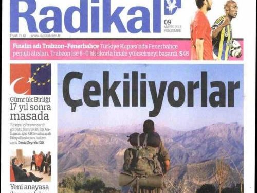 «Αποσύρονται» είναι ο τίτλος της Radikal. H τουρκική εφημερίδα αναφέρει πως « ξεκίνησε η αποχώρηση των Κούρδων ανταρτών. Πρώτες πληροφορίες αναφέρουν πως οι πρώτες μετακινήσεις ξεκίνησαν από την περιοχή Σεμντίνλι. Αυτή είναι μια σημαντική κίνηση στην προσπάθεια της επίλυσης του Κουρδικού ζητήματος».
