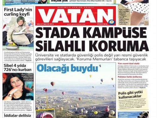«Ένοπλοι φρουροί στα γήπεδα και στα πανεπιστήμια» είναι ο τίτλος της Vatan. H τουρκική εφημερίδα αναφέρεται στην απόφαση της τουρκικής κυβέρνησης για πρόσληψη 10.00 ειδικών φρουρών που θα αναλάβουν την προστασία των πανεπιστήμιων και των γηπέδων. Η αστυνομία δεν θα ασχολείται πια με την φρούρηση τους.