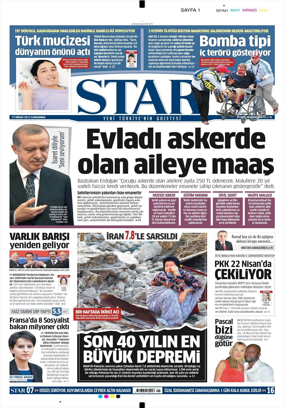 «Μισθό στην οικογένεια που το παιδί της είναι φαντάρος» είναι ο τίτλος της Star. H τουρκική εφημερίδα αναφέρει πως ο Ερντογάν ανακοίνωσε ένα νέο μέτρο όπου θα δίνεται μισθός σε οικογένειες που τα παιδιά τους υπηρετούν στον τουρκικό στρατό.