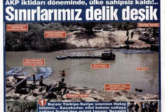 « Τα σύνορα μας είναι τρύπια» είναι ο τίτλος της τουρκικής εφημερίδας η οποία αναφέρει πως στην Αντιόχεια , λαθρέμποροι από τη Συρία φέρνουν μαζούτ σε μπιντόνια και σε συνεργασία με τούρκους περνούν τα ποτάμια ανενόχλητοι για να τα πουλήσουν στην Τουρκία. «Κανείς δεν παρεμβαίνει και ούτε υπάρχει κάποια περιπολία από πουθενά» γράφει η Sözcü.