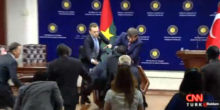 Μπροστά στις τηλεοπτικές κάμερες λιποθύμησε ο υπουργός Εξωτερικών της Μπουρκίνα Φάσο μόλις ξεκινούσε τη συνέντευξη Τύπου με τον τούρκο ομόλογο του Αχμέτ Νταβούτογλου.