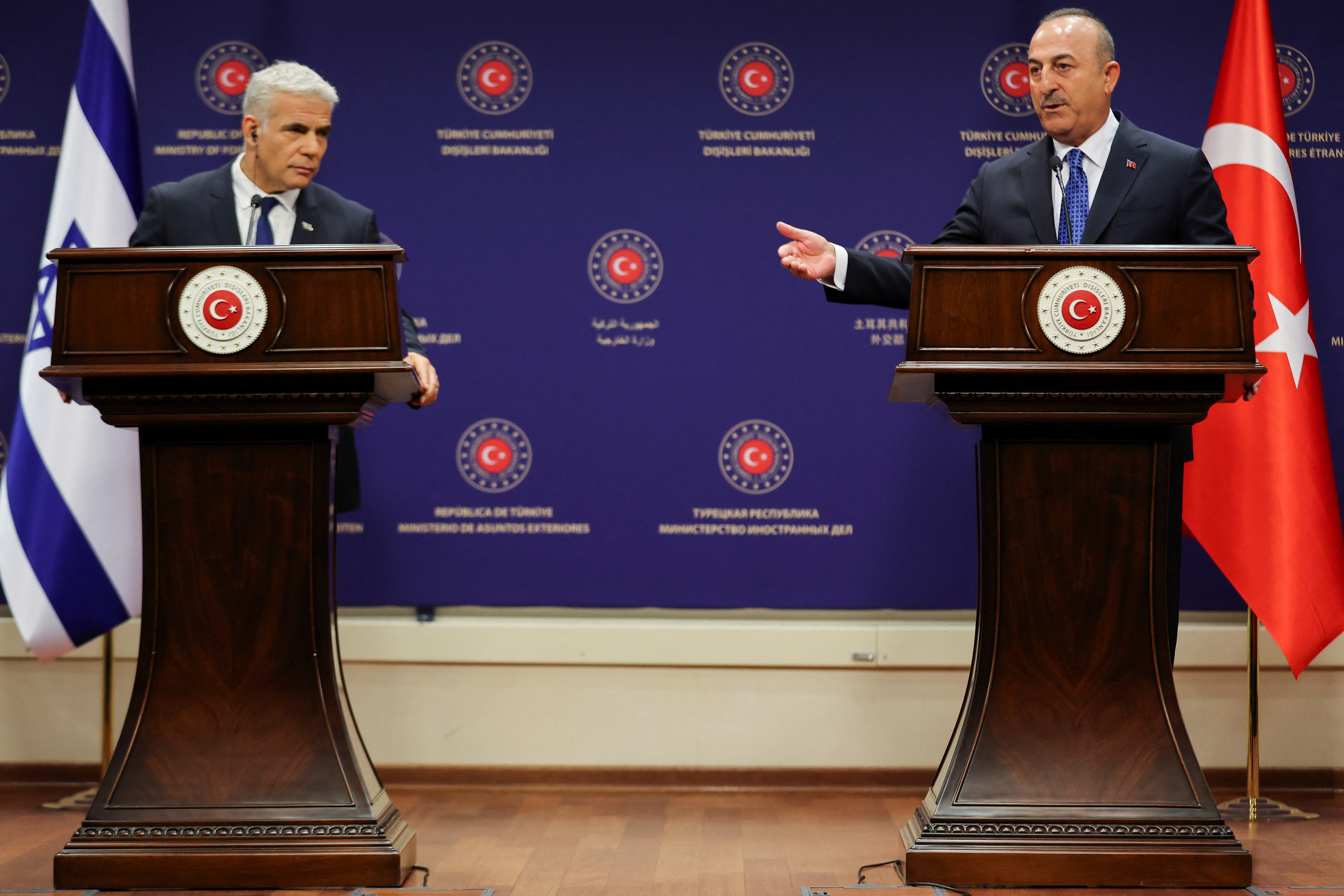 Ο Τσαβούσογλου έκανε αυτή τη δήλωση κατά τη συνάντηση που είχε με τον Ισραηλινό ομόλογό του, τον Γιαΐρ Λαπίντ, ο οποίος επισκέπτεται σήμερα την Άγκυρα, εν μέσω της ανησυχίας που εξέφρασε πρόσφατα το Ισραήλ ότι οι πολίτες του μπορεί να γίνουν στόχος Ιρανών πρακτόρων στην Τουρκία.