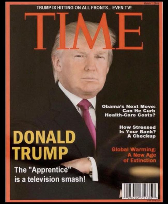 Ένας δημοσιογράφος της εφημερίδας Washington Post, κατά την διάρκεια επίσκεψής του σε ένα από τα γκολφ κλαμπ του Ομίλου Τραμπ, παρατήρησε ένα εξώφυλλο του Time στο οποίο αναγραφόταν: «Ο Τραμπ έχει σουξέ σε όλα τα μέτωπα. . . ακόμη και στην τηλεόραση» και σε ένα άλλο σημείο: «Το Apprentice είναι μια τηλεοπτική επιτυχία». Προφανώς το συγκεκριμένο εξώφυλλο του περιοδικού, με ημερομηνία έκδοσης 1η Μαρτίου 2009, ήταν ψεύτικο.