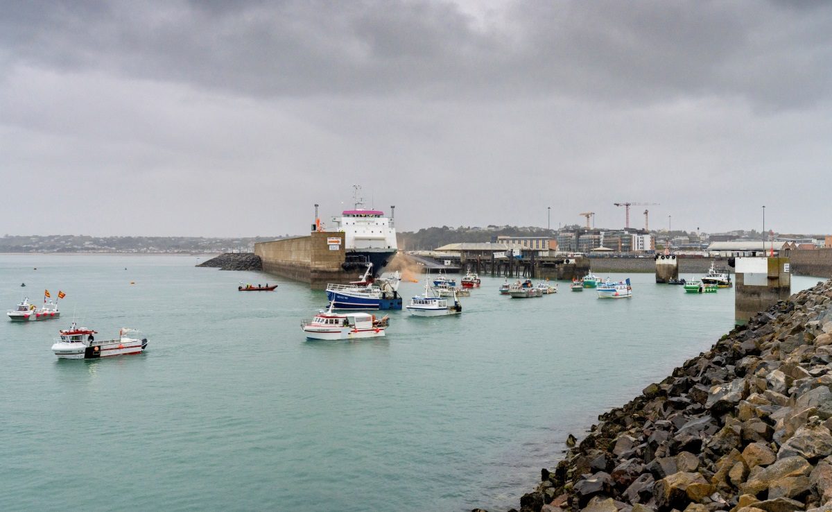 Υπό την επιτήρηση δύο πλοίων του βρετανικού Βασιλικού Πολεμικού Ναυτικού, δεκάδες γαλλικά αλιευτικά κατέπλευσαν σήμερα το πρωί μπροστά από το λιμάνι της πρωτεύουσας του Τζέρσεϊ, του μεγαλύτερου από τα Αγγλονορμανδικά νησιά στη Μάγχη, για να διαμαρτυρηθούν για τους περιορισμούς που επιβάλλονται στους Γάλλους αλιείς μετά το Brexit.