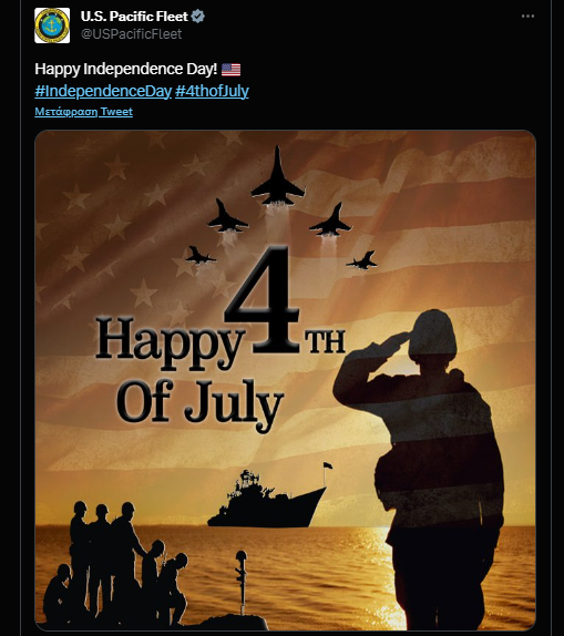 Viral για τους…λάθος λόγους έχει γίνει τις τελευταίες ώρες η ανάρτηση που έκανε ο επίσημος λογαριασμός της Διοίκησης Ειρηνικού του Πολεμικού Ναυτικού των ΗΠΑ (U.S Navy) με αφορμή την επέτειο της 4η Ιουλίου για την Ημέρα Ανεξαρτησίας,.