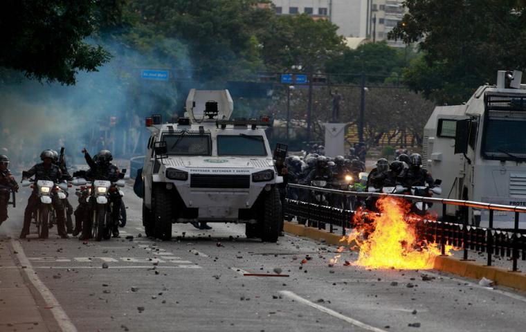 Από την περασμένη Δευτέρα, όταν 27 στρατιώτες ανέβασαν στα social media video με το οποίο καλούσαν το λαό σε εξέγερση, η Βενεζουέλα έχει παραδοθεί ξανά στο χάος. 13 άνθρωποι έχουν σκοτωθεί τις τελευταίες δυο μέρες στις βίαιες συγκρούσεις και τα επεισόδια, στο Καράκας και άλλες πόλεις, σύμφωνα με το Παρατηρητήριο για τις κοινωνικές συγκρούσεις.