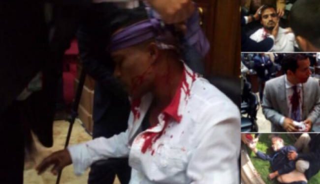 Αυτόπτες μάρτυρες που επικαλείται το πρακτορείο Ρόιτερς, ανέφεραν ότι αρκετοί βουλευτές και δημοσιογράφοι τραυματίστηκαν. Εικόνες που μετέδωσαν τηλεοπτικά δίκτυα έδειξαν δύο βουλευτές της αντιπολίτευσης με αίματα να τρέχουν από τα πρόσωπά τους.