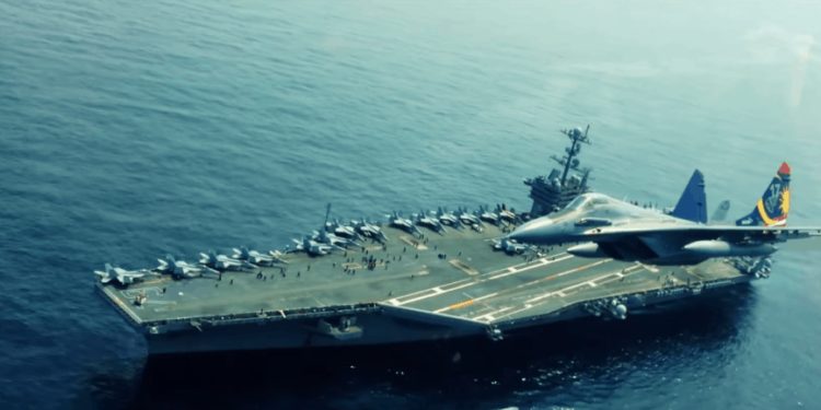 Το βίντεο ξεκινάει με ενα καταπληκτικό πλάνο του αεροπλανοφόρου, αναδεικνύοντας όλη την υπεροχή των ΗΠΑ.