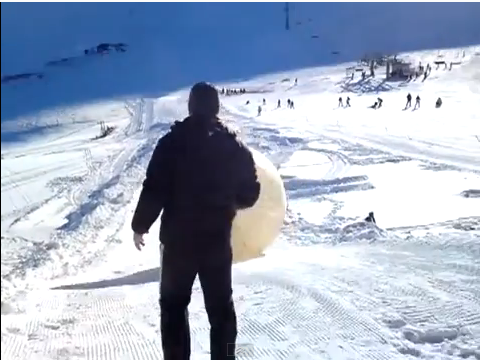 Η σφαίρα ή orb που περιείχε τους δύο άντρες επρόκειτο να σταματήσει στο κάτω μερος της πλαγιάς όμως άλλαξε πορεία με αποτέλεσμα να πέσει απο μια χαράδρα και να καταλήξει ενα χιλιόμετρο μακρία σε μια παγωμένη λίμνη. Στο βίντεο οι διοργανωτές ακουγεται να αναρωτιούνται  ‘που ακριβώς πάει η μπάλα’ και ‘τι βρίσκεται προς εκείνη την κατεύθυνση’!