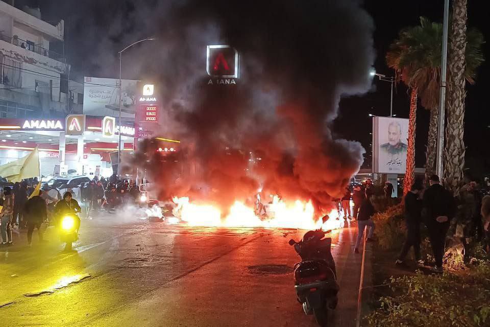 Ανεμίζοντας κίτρινες σημαίες της Χεζμπολάχ και πορτρέτα του πρώην ηγέτη του κινήματος Χασάν Νασράλα – σκοτώθηκε σε ισραηλινό πλήγμα σε προάστιο της Βηρυτού στα τέλη Σεπτεμβρίου –, νεαροί έκαψαν λάστιχα και διέκοψαν την κυκλοφορία στον αυτοκινητόδρομο, διαπίστωσε φωτοειδησεογράφος του Γαλλικού Πρακτορείου.