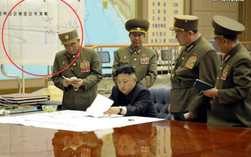 Σάλος έχει προκληθεί από τις φωτογραφίες που απεικονίζουν τον ηγέτη της Βόρειας Κορέας Κιμ Γιοκ Ουν στο γραφείο του με τους στρατηγούς του να καταστρώνει σχέδια για το πως θα πληγούν οι ΗΠΑ. Κι’ αυτό γιατί στους χάρτες που φαίνονται στις φωτογραφίες εμφανίζονται ως στόχοι η Ουάσινγκτον, το Τέξας, η Χαβάη και το Λος Άντζελες.