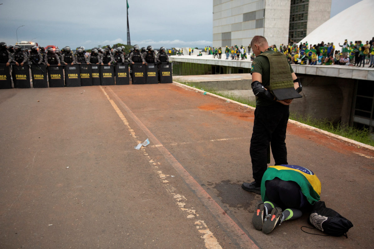 Το κέντρο των τριών εξουσιών στην Μπραζίλια βυθίστηκε στο χάος. Μολονότι η περιοχή ήταν αποκλεισμένη από τις αρχές, οι μπολσοναριστές κατάφεραν να διαπεράσουν τις ζώνες ασφαλείας. Αστυνομικοί προσπαθούσαν, μάταια, να τους απωθήσουν με εκτενή χρήση δακρυγόνων. Βίντεο καταγράφει διαδηλωτές να ρίχνουν έφιππο αστυνομικό κάτω και να τον ξυλοκοπούν με ρόπαλα. Τοπική ένωση δημοσιογράφων κατήγγειλε πως τουλάχιστον πέντε δημοσιογράφοι υπέστησαν επιθέσεις. Ανάμεσά τους ήταν φωτοειδησεογράφος του Γαλλικού Πρακτορείου, που υπέστη χτυπήματα από διαδηλωτές οι οποίοι του έκλεψαν το υλικό του.