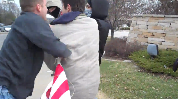 Άγριο ξύλο για την αμερικανική σημαία. Ένας βετεράνος -νέος σε ηλικία- είδε ότι ομάδα αντιμιλιταριστών στην οποία συμμετείχε κι ένας μεγαλύτερος σε ηλικία βετεράνος κρατούσαν ανάποδα την αμερικανική σημαία. Έξαλλος ζήτησε από την ομάδα των διαδηλωτών να κρατήσουν κανονικά τη σημαία και το τι ακολούθησε όταν εκείνοι αρνήθηκαν δείτε το στο βίντεο.