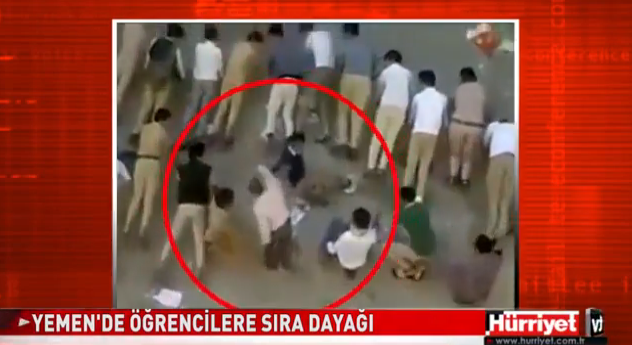 Τραβήχτηκε στην πόλη Ταίζ της Υεμένης και δείχνει 200 περίπου μαθητές λυκείου, που τους δέρνουν! Γιατί πέφτει τόσο ξύλο; Επειδή λέει άργησαν να πάνε στο μάθημα!