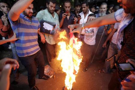 Νωριτερα εκατοντάδες διαδηλωτές βρέθηκαν εξω απο την Αμερικάνικη πρεσβεία στο Κάιρο.