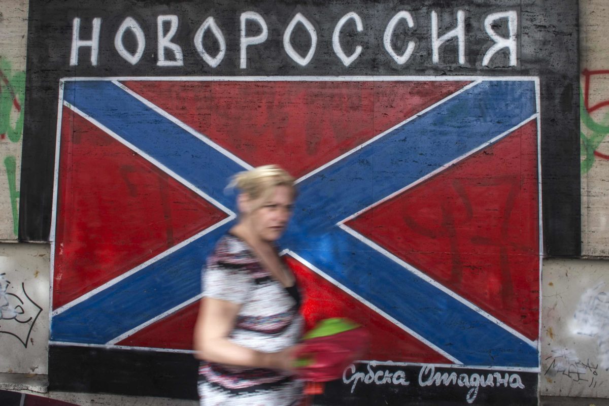 (Στην παραπάνω φωτογραφία του Reuters, μια γυναίκα να περπαταέι μπρόστα απο γκράφιτι για μια Νεα Ρωσία, στο Βελιγράδι)