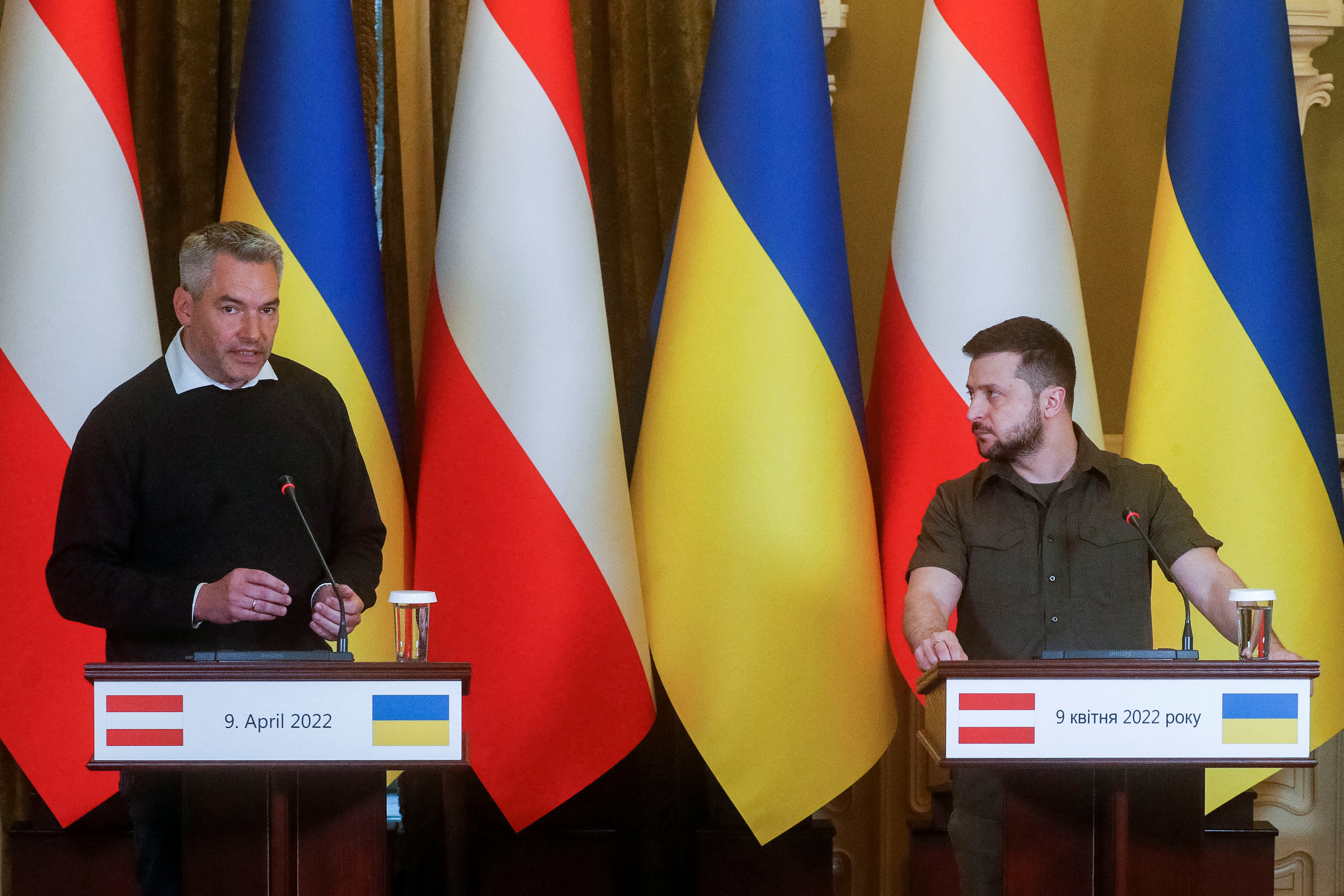 «Η Ουκρανία έλεγε πάντα πως είναι έτοιμη για διαπραγματεύσεις και πως αναζητεί κάθε πιθανότητα για να σταματήσει ο πόλεμος. Παράλληλα βλέπουμε δυστυχώς ετοιμασίες για σημαντικές μάχες, ορισμένοι λένε αποφασιστικής σημασίας, στα ανατολικά», δήλωσε ο Ζελένσκι σε συνέντευξη Τύπου με τον Αυστριακό καγκελάριο Καρλ Νεχάμερ. Ο τελευταίος επισκέπτεται το Κίεβο και την Μπούτσα, κοντά στην ουκρανική πρωτεύουσα, που έγινε ένα σύμβολο των θηριωδιών της ρωσικής εισβολής.