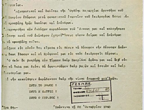 Τέτοιες ώρες το 1940, ο υποστράτηγος Χαράλαμπος Κατσιμήτρος διοικητής της 8ης Μεραρχίας είχε εκδόσει την ημερήσια διαταγή του. Οι ιταλικές δυνάμεις είχαν ήδη περάσει τα σύνορα και ο Κατσημήτρος, έβγαλε μια διαταγή που έμεινε στην ιστορία: «Αντίσταση μέχρις εσχάτων». Υπάρχουν πολλοί που υποστηρίζουν ότι οι διαταγές από την Αθήνα δεν είχαν τέτοιο …φανατισμό. Αν ισχύει κάτι τέτοιο, η διαταγή του Κατσιμήτρου,αποκτά ακόμη μεγαλύτερη σημασία.Ο διοικητής της 8ης Μεραρχίας,λέγεται ότι απείλησε στρατιώτες που εγκατέλειψαν τις θέσεις τους με εκτέλεση. Κάποιοι άλλοι υποστηρίζουν ότι κάποιοι εκτελέστηκαν. Όπως και να ‘χει η διαταγή Κατσιμήτρου αποτελεί ένα ντοκουμέντο.