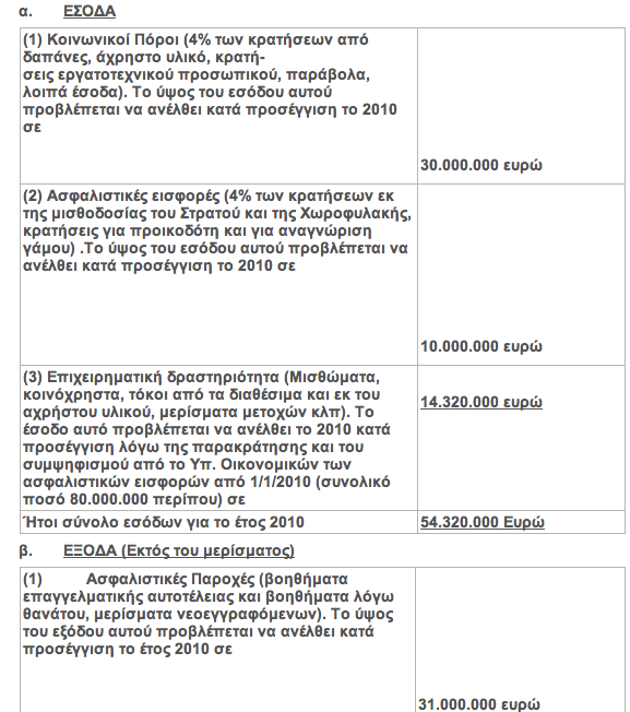 Σύμφωνα με την εισηγητική έκθεση που υπογράφεται από τη Διευθύντρια Οικονομικών Υπηρεσιών του ΜΤΣ, Μ.Υ με Α’ Βαθμό, κα Αθανασία Παπανικολάου, ο προϋπολογισμός των εσόδων και εξόδων του Ταμείου για το έτος 2010, επί τη βάσει των οποίων θα καθορισθεί το ύψος του μερίσματος του έτους 2011, οι σχετικές απόψεις επ’ αυτών και η σχετική πρόταση, έχουν ως ακολούθως (ακολουθεί ακριβές απόσπασμα εκ του Πρακτικού):
