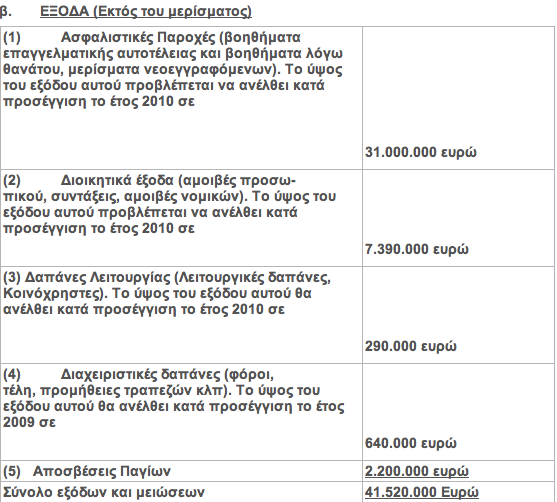 Ø Το ποσό των διοικητικών εξόδων, ύψους 7.390.000 €, θεωρείται υπερβολικά υψηλό, αν το συγκρίνει κανείς με το αντίστοιχο του ΜΤΝ, το οποίο ανέρχεται για το ίδιο έτος σε 444.000 €!