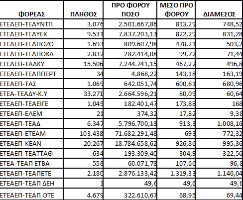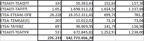 Ακολουθεί ο πίνακας με τα στοιχεία των αναδρομικών ποσών (10/2019 – 05/2020) των ενεργών (σύμφωνα με τα αποστελλόμενα από τους φορείς στοιχεία πληρωμής συντάξεων μηνός 07/2020) επικουρικών συντάξεων, ανά φορέα, και οι οποίες και θα πιστωθούν μέσω ΔΙΑΣ από το ΕΣΕΠΣ: