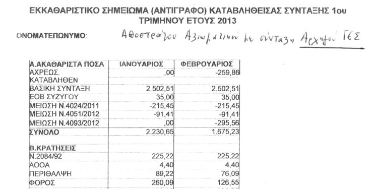Γιατί διαμρτύρονται οι απόστρατοι; Τα εκκαθαριστικά που παρουσιάζει ο αντιστράτηγος ε.α Ν.Ναούμ, νομίζουμε ότι δίνουν απάντηση που κανείς δεν μπορεί να αμφισβητήσει.