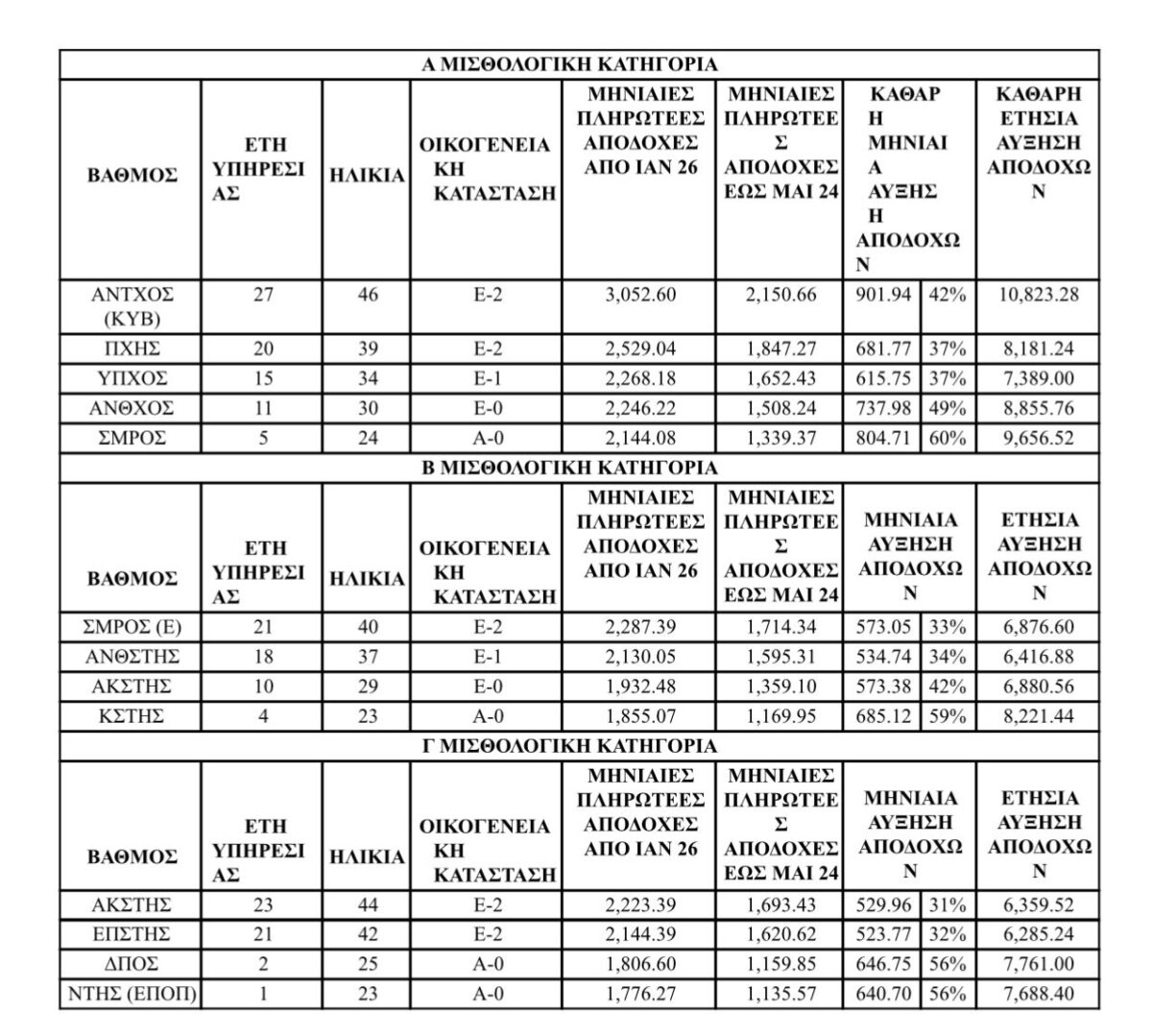 –Ανθυποπλοίαρχος 11ετίας χωρίς οικογενειακές υποχρεώσεις βλέπει αύξηση που αγγίζει το 49%.