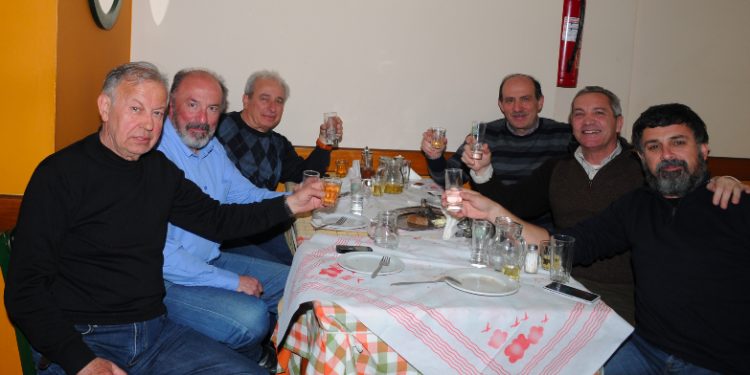 Η “ομάδα” εντοπίστηκε σε ταβέρνα της Νέας Σμύρνης -πάντα- με την “προσθήκη” ενός αεροπόρου αλλά κι ενός ανθρώπου που τα έχει δει όλα μέσα από το φακό του. Πρώτος -και καλύτερος- από αριτερά ο επί δεκαετίες φωτογράφος του ΓΕΝ -κι όχι μόνο- Δημητρης Παναγιωτόπουλος.