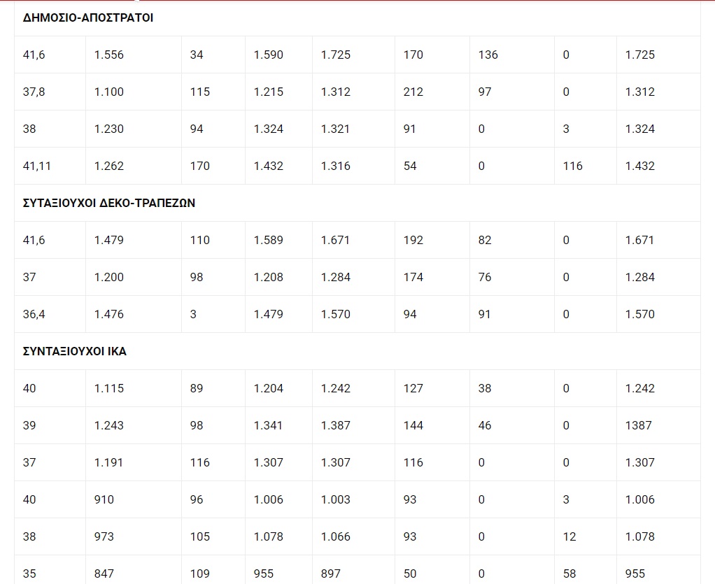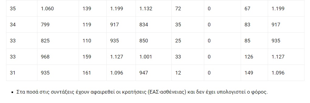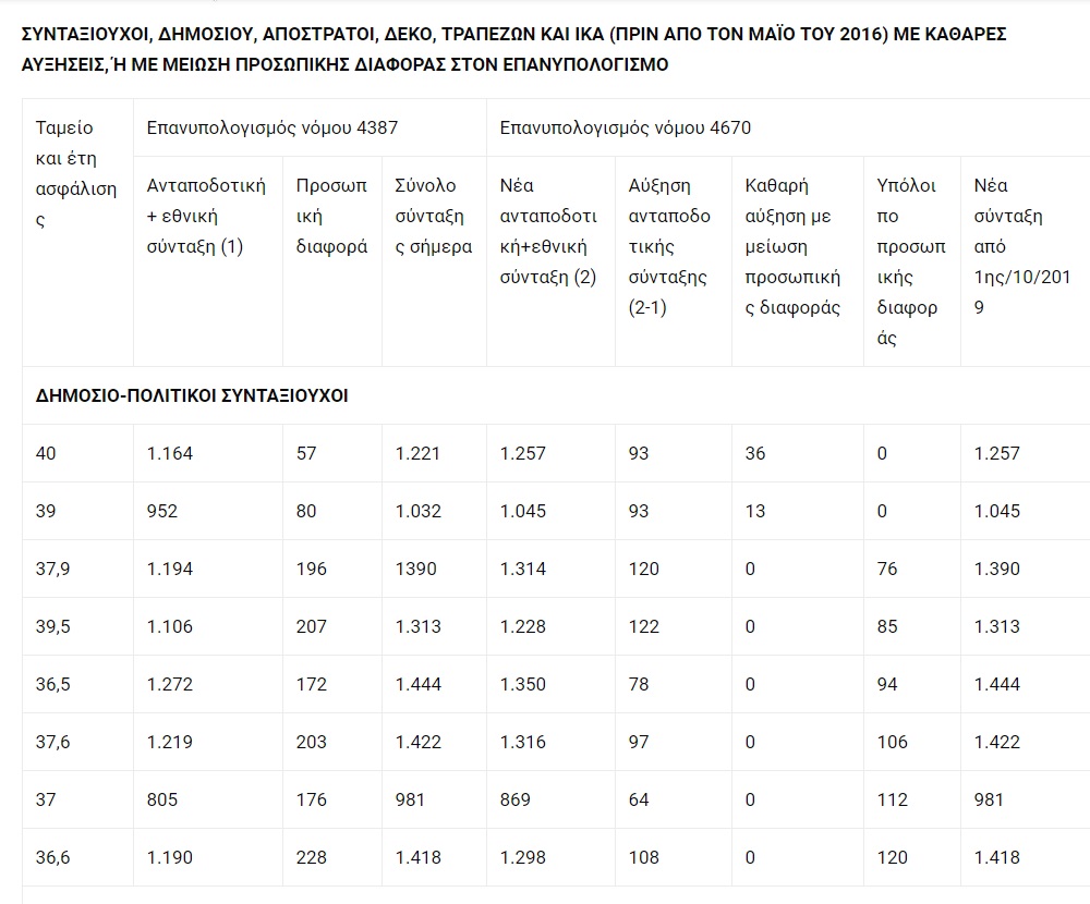 Στον πίνακα που δημοσιεύει το ένθετο «Ασφάλιση και Συντάξεις» το «Ελεύθερου Τύπου», ο επανυπολογισμός για τους παλαιούς (πριν από τον Μάιο του 2016) συνταξιούχους θα φέρει τα εξής αποτελέσματα: