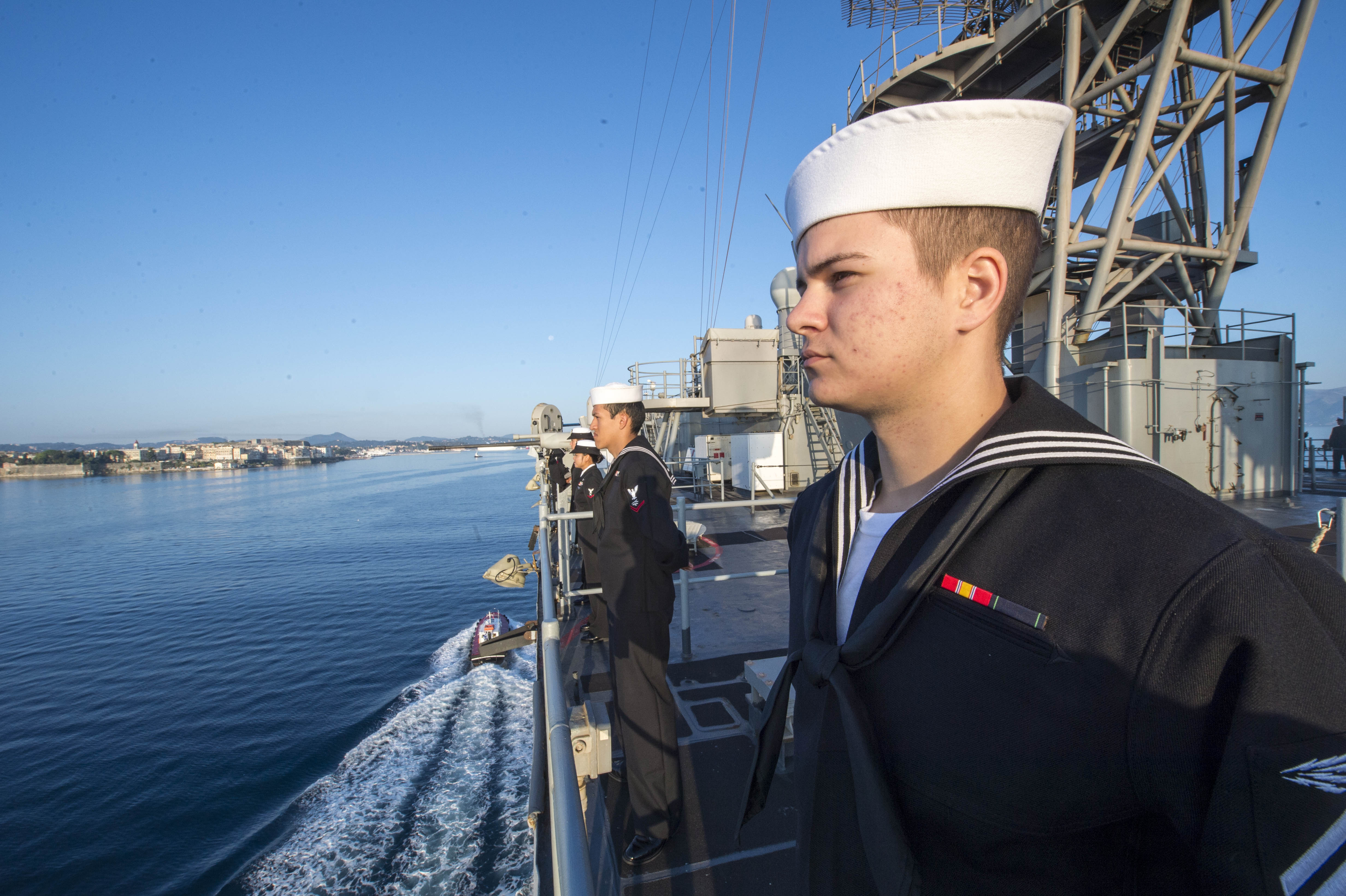 Στην Κέρκυρα βρέθηκε το μεγάλο αποβατικό σκάφος των ΗΠΑ USS Gunston Hall (LSD 44),ένα από τα »μπαρουτοκαπνισμένα» πλοία της δύναμης Amphibious Ready Group (ARG) που βρισκόταν στον Περσικό Κόλπο με τον 5ο αμερικανικό Στόλο και είχε σημαντικό ρόλο στην υποστήριξη των από αέρος επιχειρήσεων κατα της ακραίας τζιχαντιστικής οργάνωσης <<Ισλαμιστικό Κράτος>> ( ΙSILή ISIS) στην Συρία και στο Ιράκ. Στην δύναμη πλοίων ARG επιβαίνει και επιχειρεί από εκεί το 22ο Εκστρατευτικό Σώμα Πεζοναυτών ( 22 MEU).