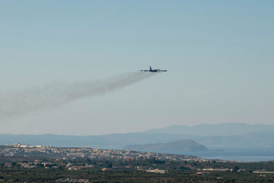 Μια απρόσμενη αλλά και «ιστορική» προσγείωση πραγματοποιήθηκε σήμερα στην βάση της Σούδας στην Κρήτη, καθώς για πρώτη φορά ένα B-52 «Stratofortress», το περιβόητο και θρυλικό «θηριώδες» στρατηγικό βομβαρδιστικό της Πολεμικής Αεροπορίας των ΗΠΑ «πάτησε» ελληνικό έδαφος.