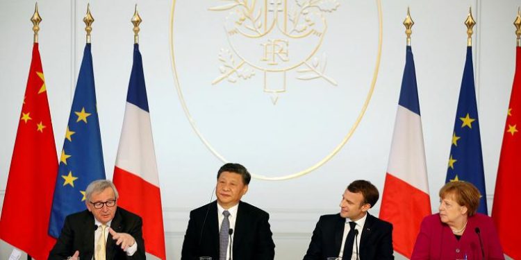 Τρεις από τους σημαντικότερους ηγέτες της Ευρωπαϊκής Ενωσης, ο Εμανουέλ Μακρόν, η Αγγελα Μέρκελ και ο Ζαν-Κλοντ Γιούνκερ συναντώνται σήμερα στο Παρίσι με τον πρόεδρο της Κίνας Σι Τζινπίνγκ επιδιώκοντας να του παρουσιάσουν ενιαίο ευρωπαϊκό πρόσωπο απέναντι στα μεγάλα διεθνή ζητήματα.