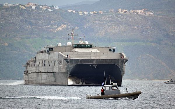 Πρόκειται για το υψηλής ταχύτητος σκάφος της Διοίκησης Θαλασσίων Στρατιωτικών Μεταφορών του Nαυτικού των ΗΠΑ, το USNS “Spearhead” (JHSV 1), Το Χάι Σπίντ με την διπλή καρίνα και τα άλλα …σχεδιαστικά …κόλπα, είναι το πρώτο σκάφος της νέας αυτής κλάσης του US NAVY που έκανε ένα τέτοιο ταξίδι εκτός »ορίων» ΗΠΑ συμμετέχοντας στο πρόγραμμα συνεργασίας <<Africa Partnership Station>> του 6ου Στόλου.
