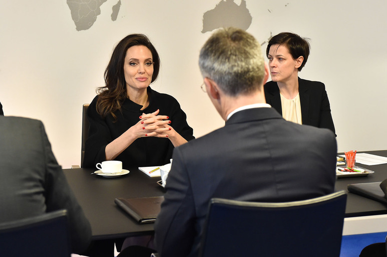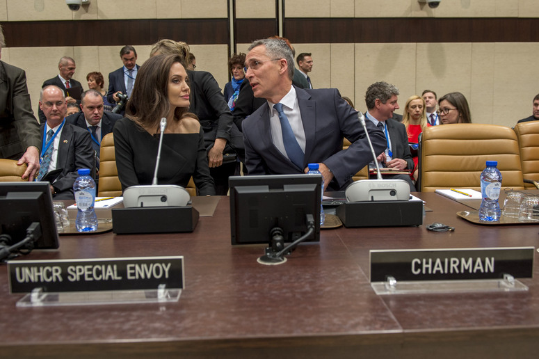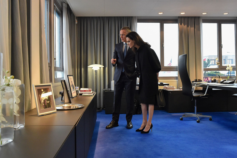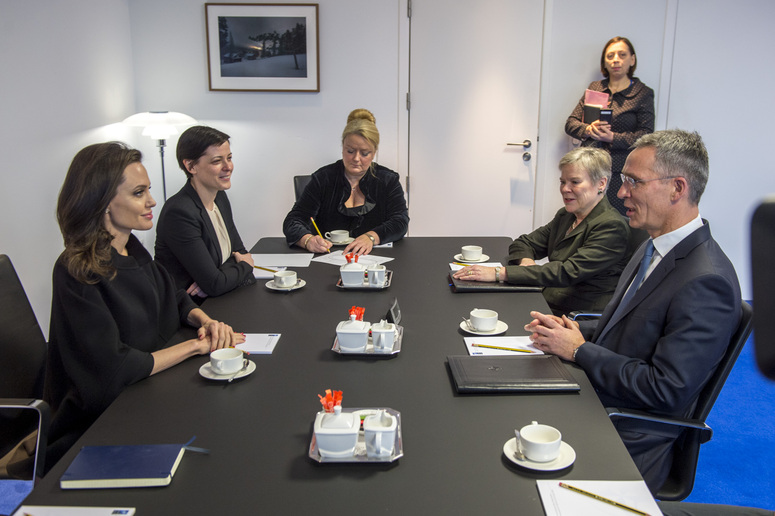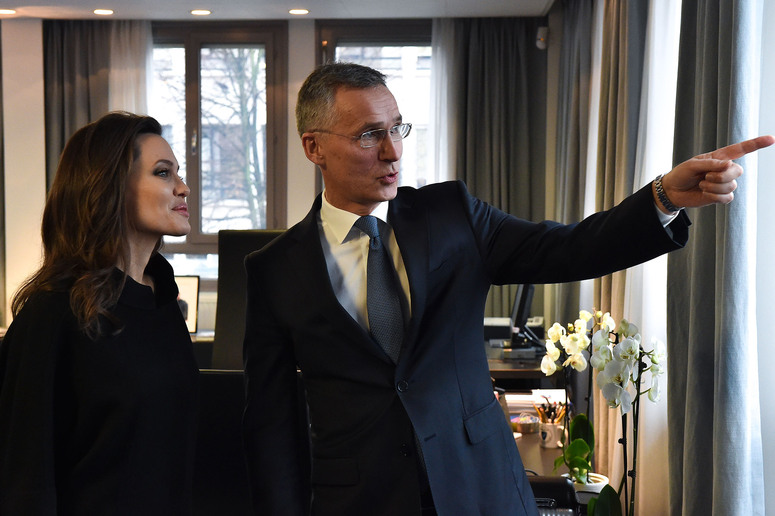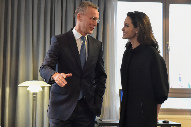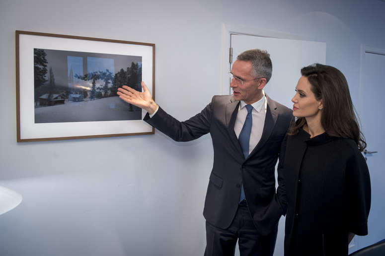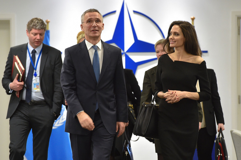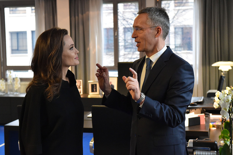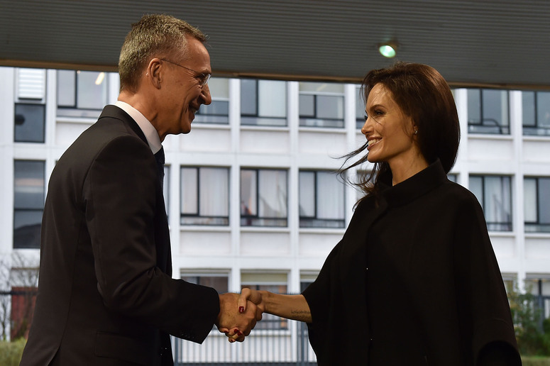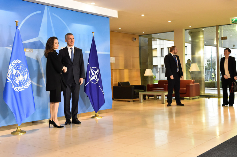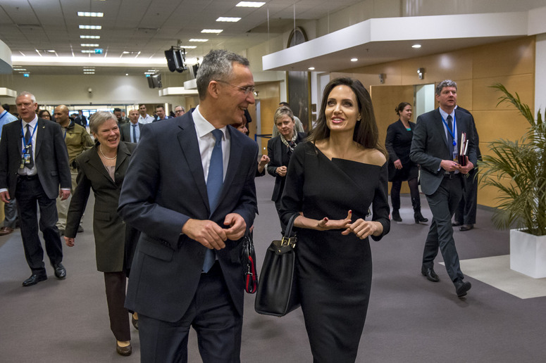Μάλιστα, η χολιγουντιανή σταρ εξέφρασε την ελπίδα της το ΝΑΤΟ να βοηθήσει, βελτιώνοντας τα πρότυπα στις τάξεις του στρατού άλλων χωρών μέσω των εκπαιδευτικών προγραμμάτων του στο εξωτερικό, όπως και της προώθησης του ρόλου των γυναικών στις ένοπλες δυνάμεις.