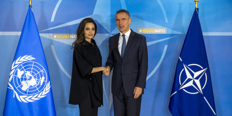Όπλο πολέμου χαρακτήρισε το βιασμό η Αντζελίνα Τζολί στην συγκλονιστική τοποθέτηση της κατά την παραμονή της εχθές στην έδρα του ΝΑΤΟ, στις Βρυξέλλες. Η χολιγουντιανή σταρ, ως απεσταλμένη της Υπατης Αρμοστείας του ΟΗΕ για τους πρόσφυγες, βρέθηκε χθες στην έδρα του ΝΑΤΟ όπου παραχώρησε συνέντευξη, έχοντας στο πλευρό της τον Γενς Στόλτενμπεργκ, και ακολούθως συναντήθηκε με τους στρατιωτικούς διοικητές του Οργανισμού.