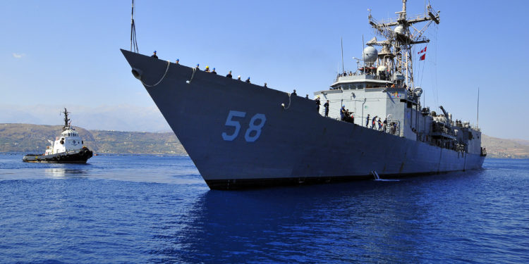 Μια φρεγάτα κατευθυνόμενων βλημάτων των ΗΠΑ με πλούσια πολεμική δράση, βρίσκεται στην βάση της Σούδας (φωτογραφία), προερχόμενη από το Δυρράχιο. Πρόκειται για την USS Samuel B. Roberts (FFG 58), κλάσεως O.X.Perry, που συμμετέχει σε αποστολή στην περιοχή ευθύνης του 6ου αμερικανικού Στόλου στην Μεσόγειο και την Αφρική. Μπαρουτοκαπνίστηκε πάντως για τα καλά το 1988.