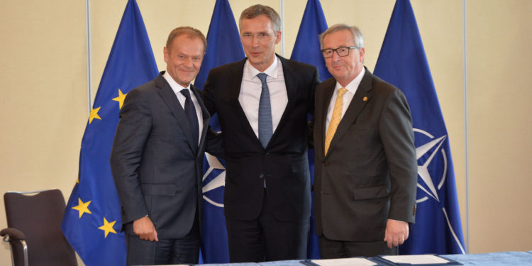 Την απόφασή τους για αναβάθμιση των σχέσεων, αλλά και το συντονισμό μεταξύ ΝΑΤΟ και ΕΕ, ανακοίνωσαν σε κοινές δηλώσεις τους, στη Σύνοδο του ΝΑΤΟ στη Βαρσοβία, ο πρόεδρος της Κομισιόν, Ζαν Κλοντ Γιούνκερ, ο πρόεδρος του Ευρωπαϊκού Συμβουλίου Ντόναλντ Τουσκ και ο γγ του ΝΑΤΟ Γενς Στόλτενμπεργκ.