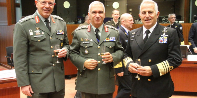 Στη φωτογραφία το ελληνικό “τρίο” στις Βρυξέλλες: Κωσταράκος-Αποστολάκης-Μπασιακούλης (ΓΕΕΦ) μ΄ ένα ποτήρι σαμπάνια ο καθένας μάλλον για να εορτάσουν την ανάληψη καθηκόντων Κωσταράκου.