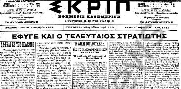 Ηταν Τρίτη 3 Νοεμβρίου του 1898 ο τελευταίος Τούρκος στρατιώτης αναχώρησε απο το λιμάνι της Σούδας, στην Κρήτη. Για εκείνη την μέρα η Ιστορία θα γράψει οτι η Κρήτη απελευθερώθηκε.