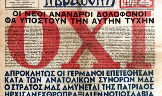 Το πρωτοσέλιδο της εφημερίδας «ΕΛΛΗΝΙΚΟ ΜΕΛΛΟΝ» στις 28 Οκτωβρίου 1940