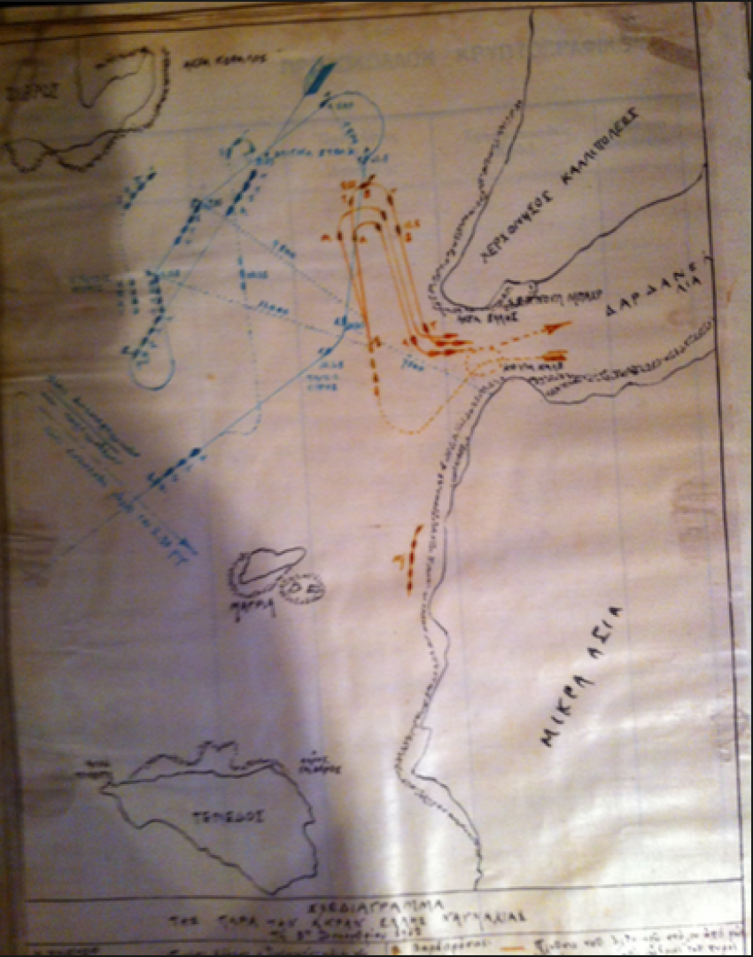 Ο χειρόγραφος χάρτης της θρυλικής ναυμαχίας της Έλλης όπου ο Αβέρωφ κατατρόπωσε του Τούρκους, είναι αυτός που βλέπετε στη φωτογραφία. Ο χάρτης περιλαμβάνεται στο μητρώο του πλοίου-θρύλου, το οποίο δόθηκε από απόστρατο ναύαρχο που το παρέδωσε για να επιστρέψει στη θέση του.
