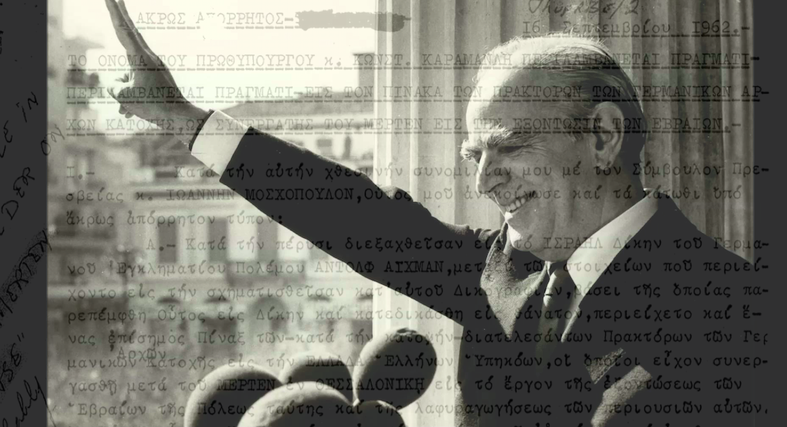 Το έγγραφο (απόρρητο που πλέον έχει αποχαρακτηριστεί και έχει «ανέβει» στη σελίδα της CIA) έχει ημερομηνία 16 Σεπτεμβρίου 1962. «Άκρως απόρρητος. Το όνομα του πρωθυπουργού κ. Κωνστ. Καραμανλή περιλαμβάνεται πράγματι εις τον πίνακα των πρακτόρων των γερμανικών αρχών κατοχής, ως συνεργάτης του Μέρτεν εις την εξόντωσιν των Εβραίων», είναι η επικεφαλίδα του εγγράφου.